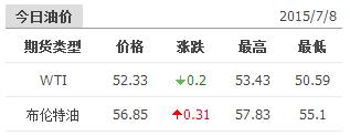 2015年7月8日國際原油價格表